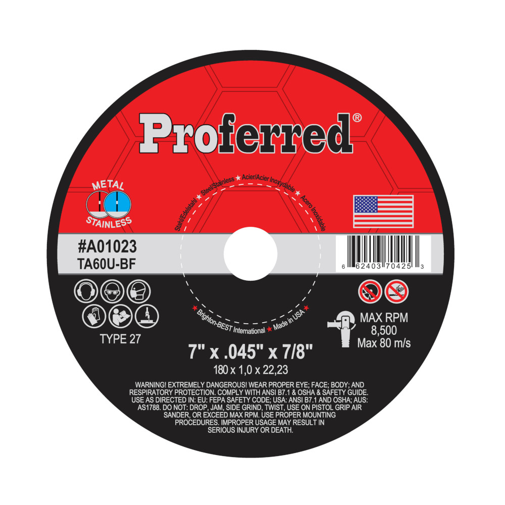 Abrasive Cut-Off Wheels And Chop Saw Wheels - 7" X .045" X 7/8" Type 27 Cutoff Wheel, Ta60U